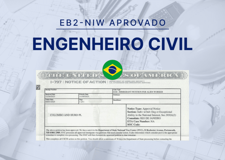 Este caso foi conduzido pelo Advogado Sênior Paul Messina, da Colombo & Hurd, um escritório de advocacia de imigração nos Estados Unidos especializado em green cards baseados em emprego, incluindo petições EB-2 NIW e EB-1A. O escritório já obteve mais de 10.000 aprovações de vistos e green cards para clientes de mais de 100 países, incluindo mais de 2.500 aprovações nas categorias EB-2 NIW e EB-1ª. desde 2023.